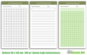 En üst kalitede farklı cilt modelleriyle üretillen bloknotlar, firmanıza ait logo, ürün resimleri, özel sloganlarınız kullanılarak hazırlanan sayfa tasarımları ile üretilmektedir.