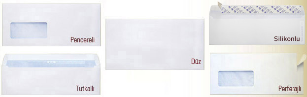 Modeller; Düz, Pencereli, Silikonlu (yapışkanlı) ve silikonsuz.(tutkallı)